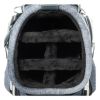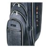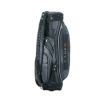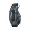 レザー調生地に風合いのある色の合皮を組み合わせたキャディバッグ。カジュアルな中にも高級感が漂い、前面には4つのポケット、背面にも収納スペースが装備されています。3点式ショルダーストラップと、ステッチのアクセントカラーが特徴で、特別ネームプレートも付いています。口枠5分割、セパレーター数3分割。