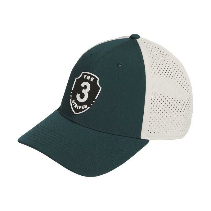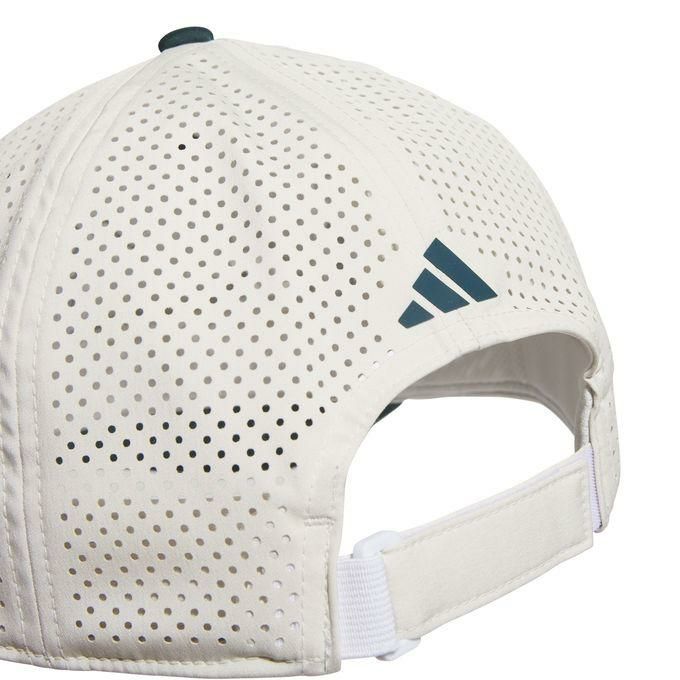 日差しが強い日でも、視界をしっかりガードし、集中力をサポートするadidasのゴルフキャップ。メッシュ素材のバックパネルが通気性を高める。