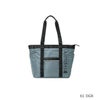 タウンユースシリーズのトートバッグ。艶のあるポリエステル生地にワタ加工しており、風合いが良い。ハンドル部分には合皮を使用。腕がしっかり通るため、重たい荷物でも疲れにくい構造。天マチ付きでファスナー開口。正面はファスナーポケット、両サイドと背面は差し込みポケット。内側にもファスナーポケットがポケットがついている。