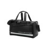 レザー調PU生地とエナメル生地を使用した、高級感のあるモデルです。ゴルフロッカーに立てた状態でも収納しやすいよう、側面ハンドルをつけました。本体外側に、ファスナーポケットが2か所あります。開口部がコの字型になっており、出し入れしやすい仕様です。開口部裏側は視認性の良いメッシュ仕立てのファスナーポケットで、本体内部には、ファスナーポケット、二つの仕切りポケット付き。取り外し可能なパット付きショルダーベルトも付属しています。