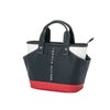 内側にファスナーポケット、2個の仕切りポケットを備えたラウンドバッグ。外側にも便利な2個のアウターポケット付きで、収納力も高いバッグです。高級感のあるレザー調PU生地を使用し、カラス対策も万全な天マチファスナー付きです。