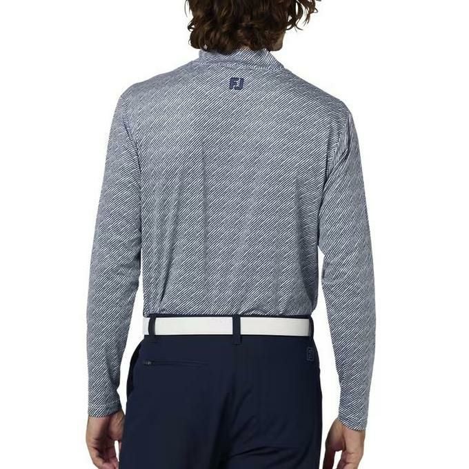 フットジョイ FOOTJOY メンズ ゴルフ ウェア トップス シャツ ウェーブラインプリントモックネック長袖シャツ 38537 ホワイト/ネイビー 【2025FW】