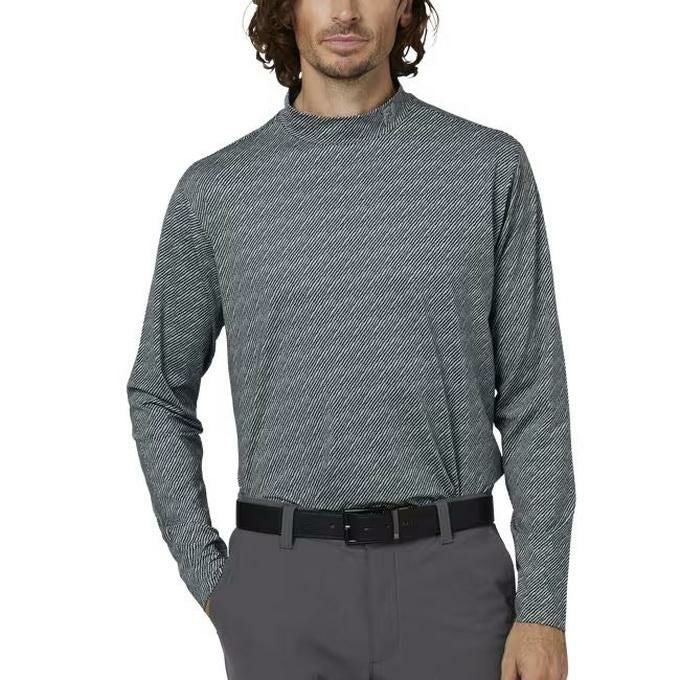 フットジョイ FOOTJOY メンズ ゴルフ ウェア トップス シャツ ウェーブラインプリントモックネック長袖シャツ 38539 ブラック/グレー 【2025FW】