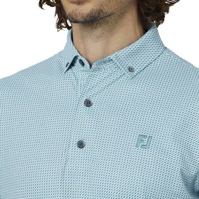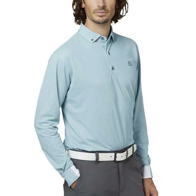 フットジョイ FOOTJOY メンズ ゴルフ ウェア トップス ポロシャツ 3Dピラミッドプリント長袖ボタンダウンシャツ 38543 エアブルー 【2025FW】