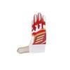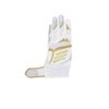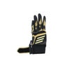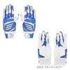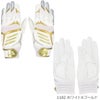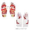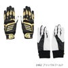 甲には意匠性に優れたデザイン、平にはグリップ性に優れた合成皮革を採用、メッシュ構造の手首ベルト、TOPモデルともデザイン連動したジュニア用バッティング手袋。