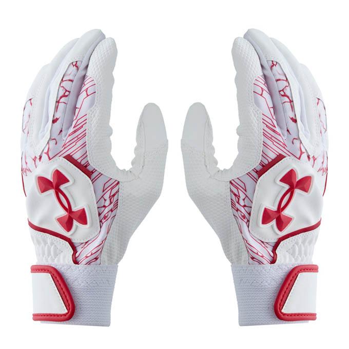 【左右セット】多くの野球選手から信頼されるアンダーアーマーのバッティンググローブ。馴染みの良い合成皮革を採用、手の構造に沿ったカッティングがスイング時に高いグリップを発揮する。