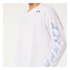 左袖のロゴグラフィックがデザインポイントのLSプラクティスシャツ。汗によるベタつきを抑える裏点接触組織は汗を素早く吸い上げ拡散し、衣服内の蒸れによる不快感を大幅に軽減します。また激しいテニスの動きに追従する独自パターン(Agileスリーブ)を開発し採用。
