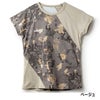大胆な柄使いの中に斜めのアシンメトリーの無地切替を施し、メリハリを出したシーズンを代表するアイテム。
