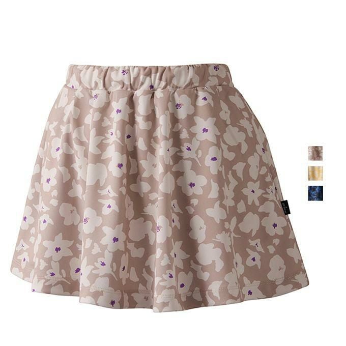同系色の花柄をプリントしたフレアーシルエットのスカート