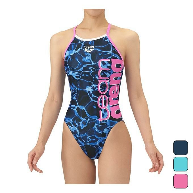 大会に向けて練習を重ねる頻度が高いスイマーにオススメの練習用水着。環境に配慮したリサイクルポリエステル素材「タフスキンT2E」を使用し塩素に強く長持ち。アドバイザリー契約を締結した選手たちと共にデザインを作成した「チームアリーナコレクション」。25FWのデザインテーマは水をイメージ。水をテーマに、水に反射した光のキラキラとした自然の中の美しさを表現。水が色々なものと混ざり合い繋がり広がっていくように、アリーナとスイマーは水で繋がっているという意味を込めたデザイン。多彩な色使いと、チームアリーナロゴを大きく配置する事により、視覚的なインパクトを与えるカッコいいスタイル。前身頃、後身頃に黒の裏地付き。ワンピースタイプ。