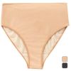 ハイウエストタイプのレディスインナーショーツ。ハイウエスト仕様でお腹をスッキリ包み込む。またフラットウエスト仕様でウエストラインが響きにくい。水着の下に着用することが可能なので、水着を一枚で着ることに抵抗があるユーザーにおススメ。