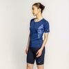 腕をすっきりカバーする袖と、体のラインを美しく引き立てるプリントデザインが特長。