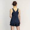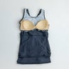 ヒップラインが気になる方におすすめ「2in1」パンツのフィットネス水着。ふんわりフレアシルエットのトップスと「2in1」パンツが気になる腰回りを可愛く自然にカバー。ブラカップ付属。ボトムスは裏地付き、無地タイプは股下10cm(Mサイズ)。