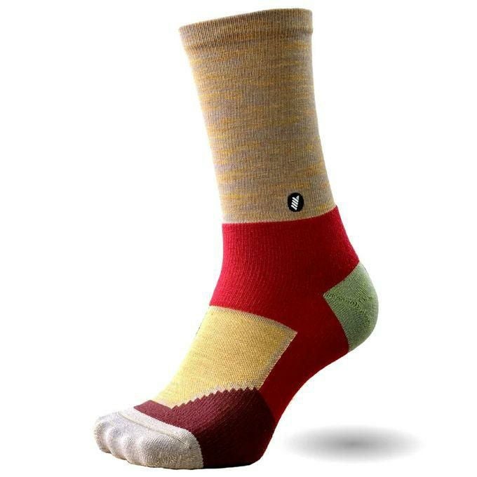 高品質メリノウール使用、甲部のメッシュ構造、つま先左右非対称設計