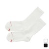 2足組クルー丈ハーフパイル仕様のソックスです。履き口部分が締め付けにくく、柔らかい着用感が特長のリブ編み設計のソックスです。つま先にラインのアクセント、足裏にさり気なくアクセントカラーでHanes(R)(ヘインズ)ロゴを入れました。
