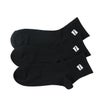 3足組クォーターレングス丈ノンパイル仕様の抗菌防臭機能付きカジュアルソックスです。足首部分のHanes(R)(ヘインズ)フラッグロゴ刺繍がデザインアクセント。ホワイトの3足組はブラック、グレー、レッドの3パターンの刺繍色で、ブラックの3枚組はホワイトの刺繍色で展開しています。