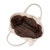 厚手のキャンバス素材を使ったトートバッグ。普段使いできるサイズ感で、マチ付きの底は硬めで安定感があるのが特徴。縦に2本フリンジテープをつけました。刺繍で施したROXYロゴがアクセント。開口部はドットボタン、内ポケット付き。