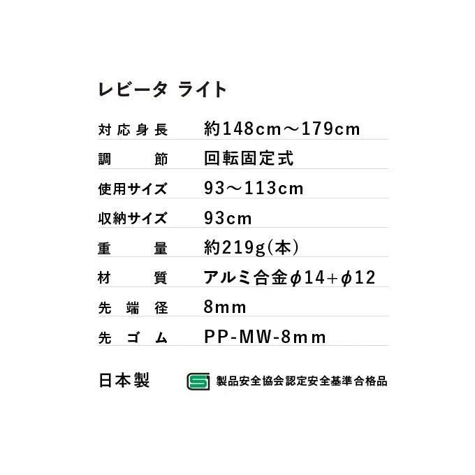 シナノ SINANO ウォーキングポール レビータ ライト ストック 650122 ブラック 【2025SS】