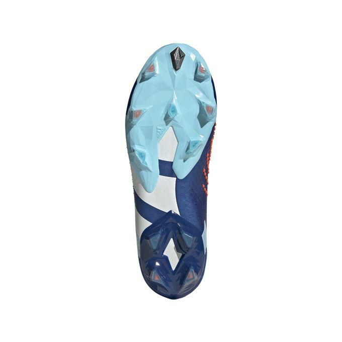 プレデターが目指すのはゴール。シュートのチャンスが来たら、決してミスしない。そのために必要なことは、キックの精度とパワーの向上。キッキングゾーンにラバーエレメントを採用し、ソフトなアッパーフィーリングを維持しながら、ボールへのグリップ力を高める。スプリットツーリングをベースにダイヤモンドのようなカッティングを施したスタッドを採用したアウトソールが、様々な角度への動きをサポート。パワーファセットを加えることで、前足部への重量比率を高め、力のあるキックにも貢献する。