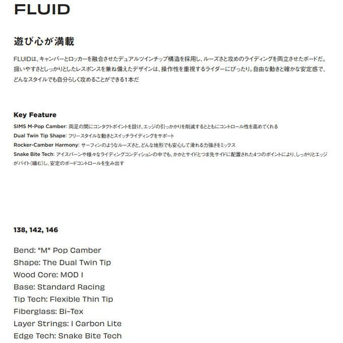シムス SIMS スノーボード板 FLUID 【2025-2026 モデル】