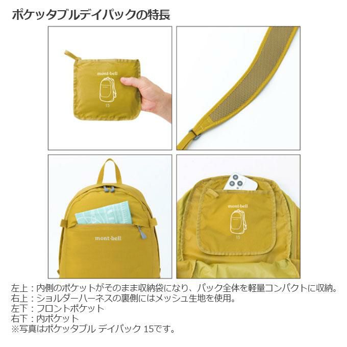モンベル mont-bell メンズ レディース アウトドア トラベル デイパック ポケッタブル ポケッタブル デイパック 15 1133472 BK