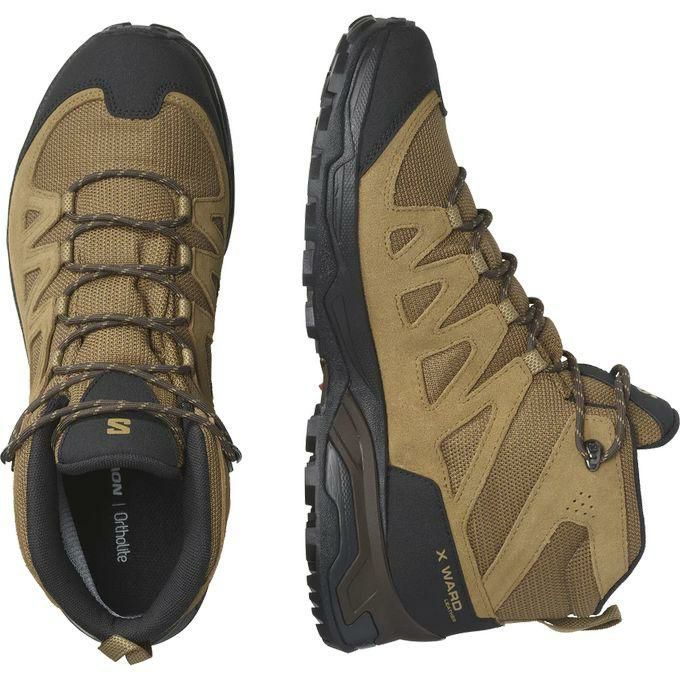 サロモン SALOMON メンズ トレッキングシューズ X WARD LEATHER MID GORE-TEX L47181800 Kangaro/Black/DullGold 【2024SS】