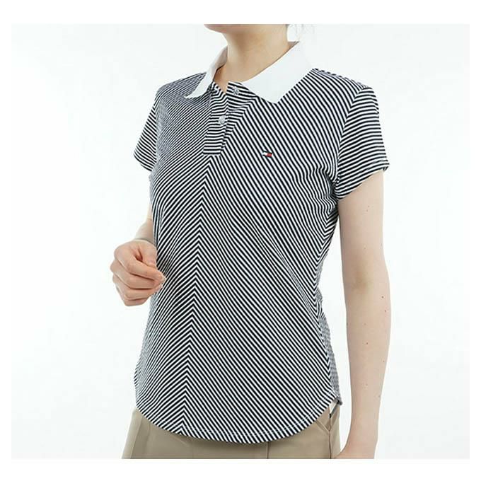 トミーヒルフィガー TOMMY HILFIGER レディースゴルフ ウェア トップス ストライプ キャップスリーブポロシャツ THLA524 【2025SS】