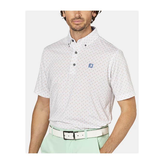 フットジョイ FOOTJOY メンズ ゴルフ ウェア トップス つぼみ柄半袖ボタンダウンシャツ 34579 【2025SS】